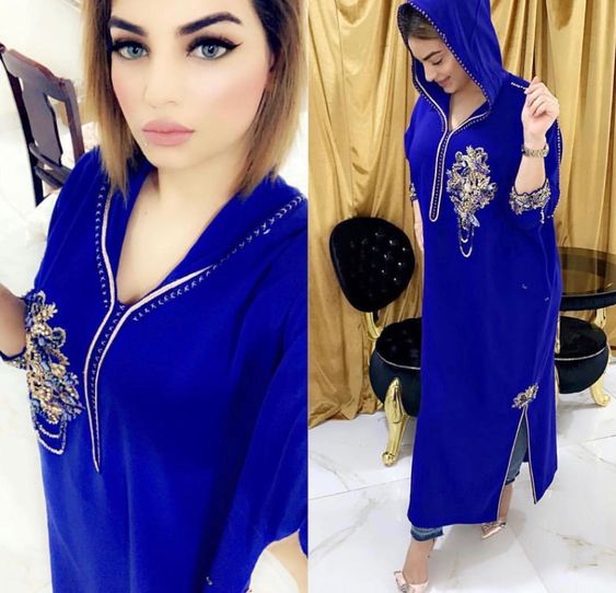 جلابة باللون الأزرق جديد الراندة للأخت Eddahbi Bouchra