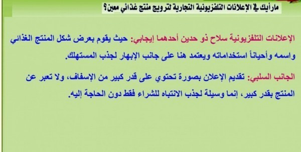 ما رايك في الاعلانات التلفزيونيه التجاريه لترويج منتج غذائي معين سؤال وجواب