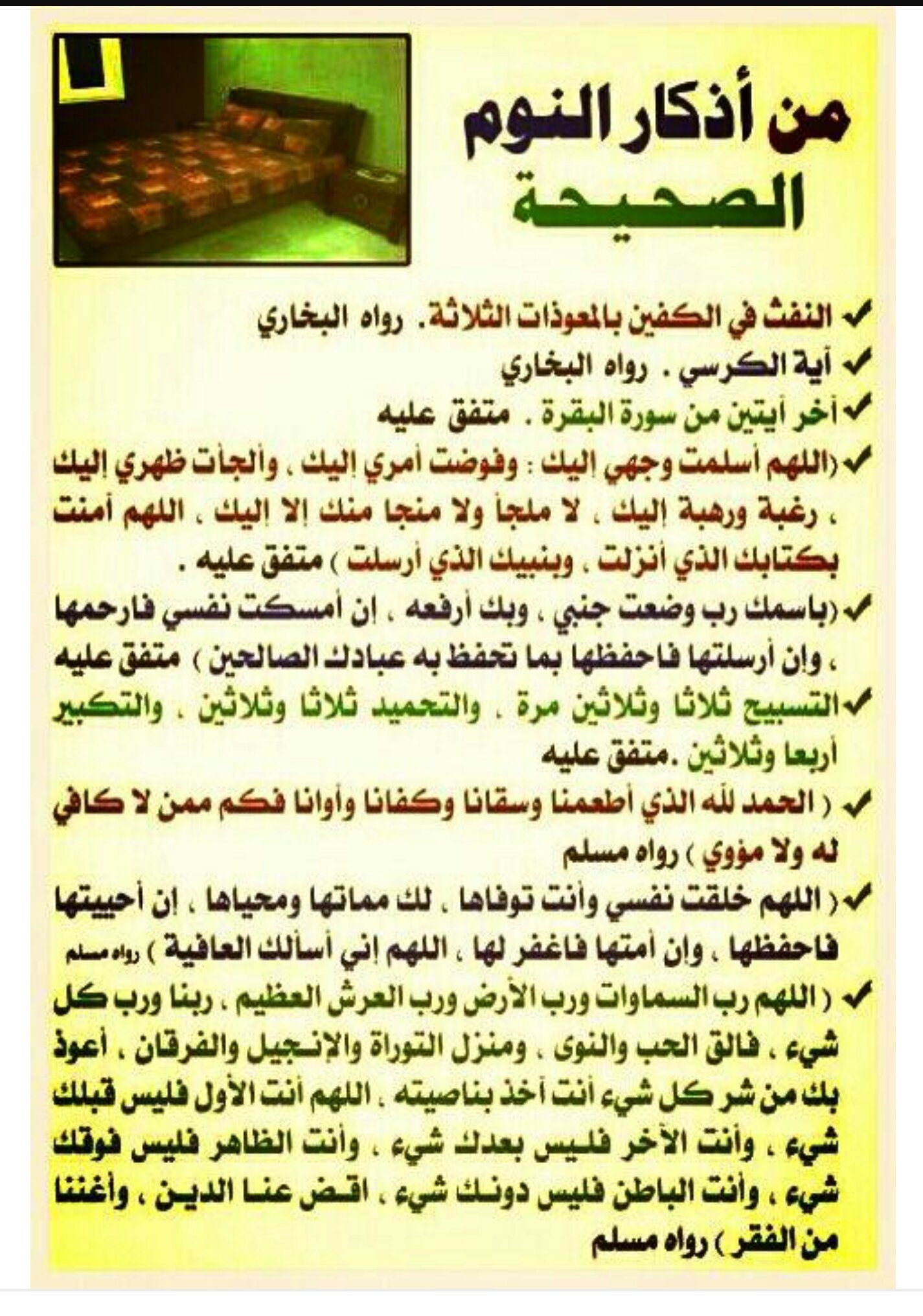 من أذكار النوم الصحيحة موقع البطاقة الدعوي