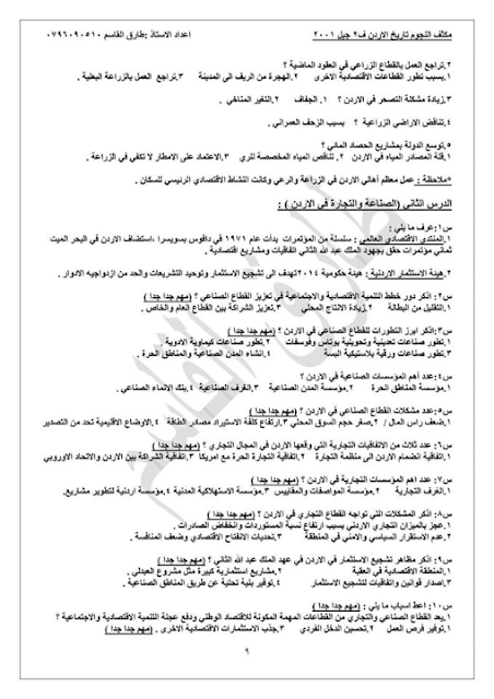 مكثف العلامة الكاملة تاريخ الأردن كافة الفروع للفصل الثاني 2019