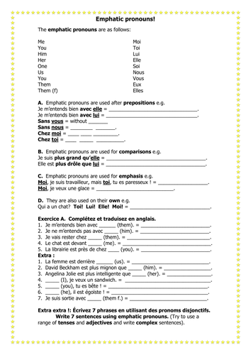 French Teaching Resources Emphatic Pronouns Worksheet Teaching Resources