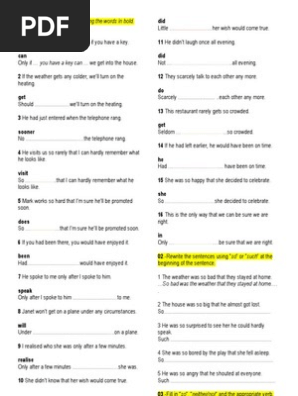 Emphatic Structures Exercises Inversions Cleft Fronting
